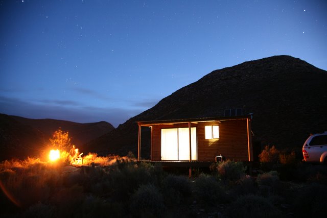 Fully equipped for self-catering, Rheboksvlakte offers a very private stay. Situated in a panoramic valley the cottage promises a front row seat to the best sunrise in the Karoo. Of wooden construction, the insulated finish ensures cool days and warm nights.